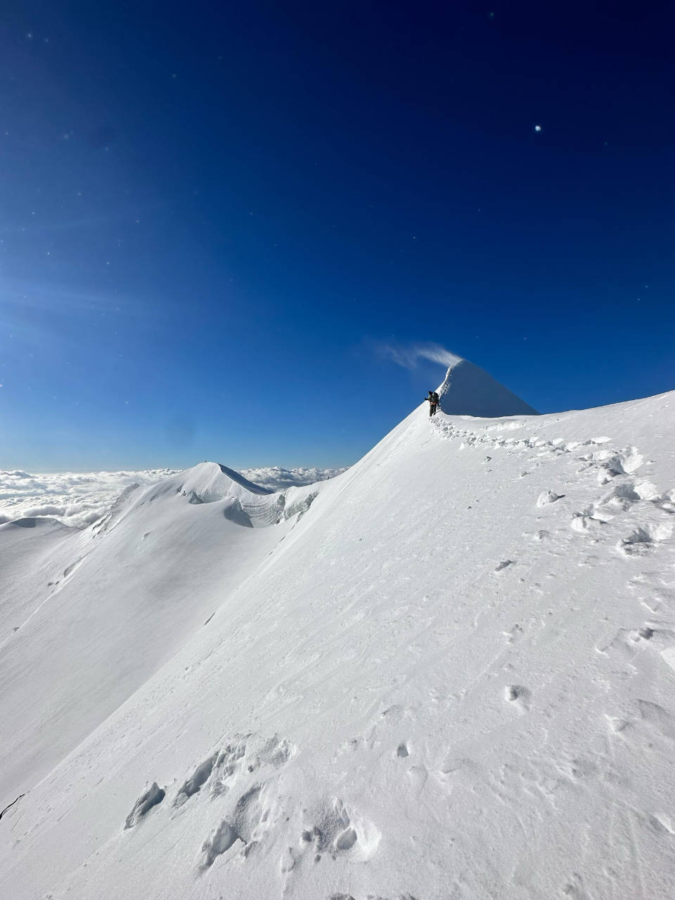 Salita da Cervinia con gli impianti fino al Piccolo Cervino (3.820 m), salita al Breithorn Occidentale (4.165 m), discesa e pernottamento al Rifugio Lambronecca (3.197 m)