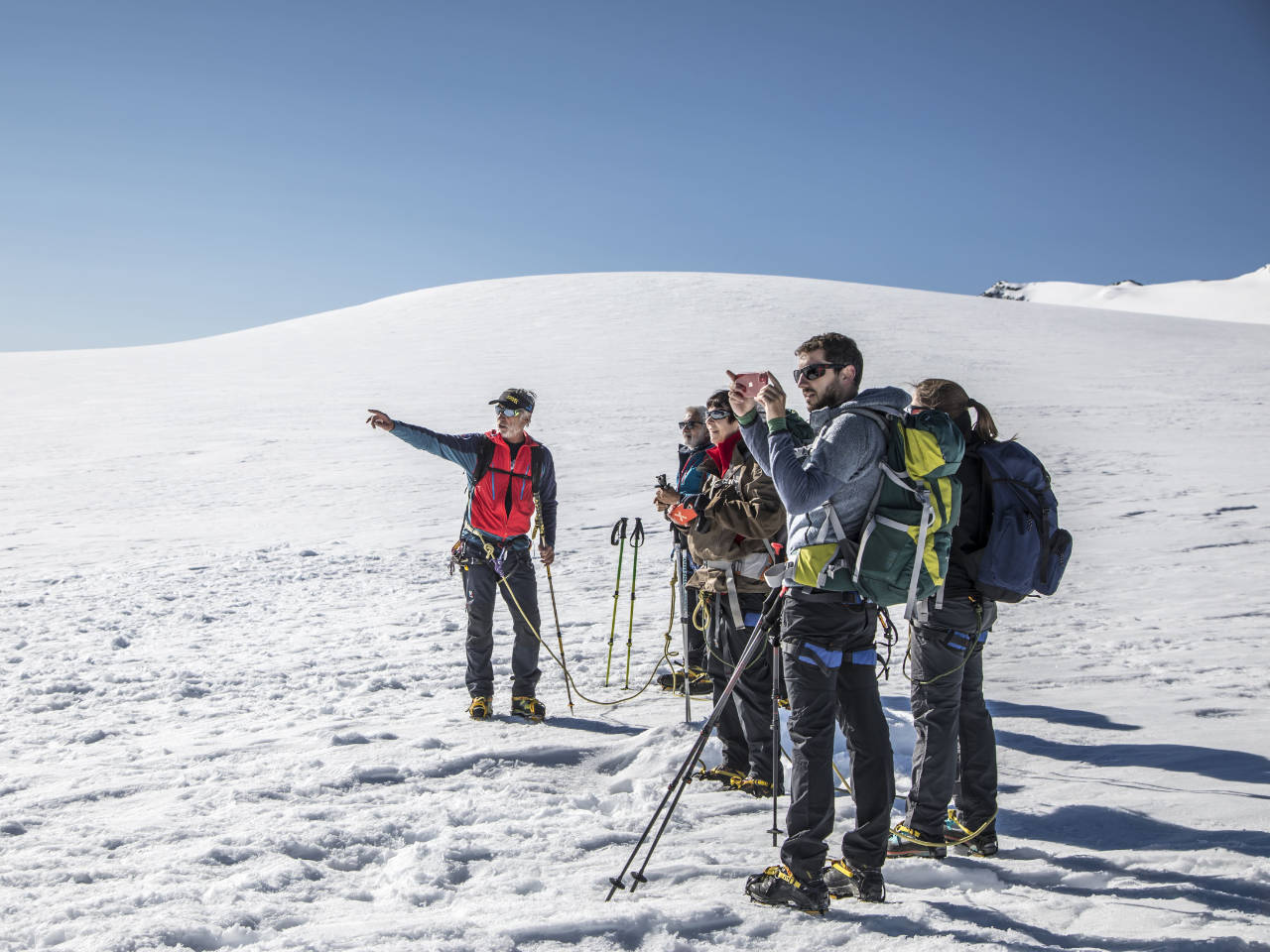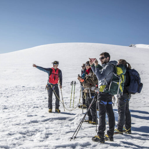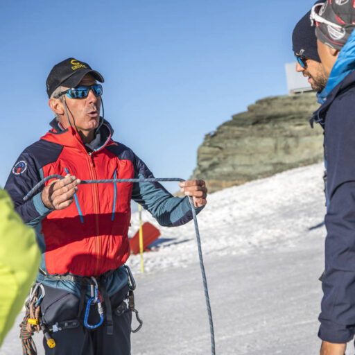 Ritrovo a Breuil-Cervinia di primo mattino. Salita con gli impianti fino al Piccolo Cervino (3.820 m), preparazione, controllo dell’attrezzatura, breve briefing tecnico. Partenza a piedi: si attraversa il ghiacciaio, con progressione in cordata, salita finale su pendio nevoso regolare fino alla vetta del Breithorn Occidentale (4.165 m). Panorama incredibile su Cervino, Monte Rosa, Gran Paradiso, Monte Bianco e tutte le grandi cime alpine, discesa per l’itinerario di salita e rientro al Piccolo Cervino. Rientro a Cervinia con gli impianti.