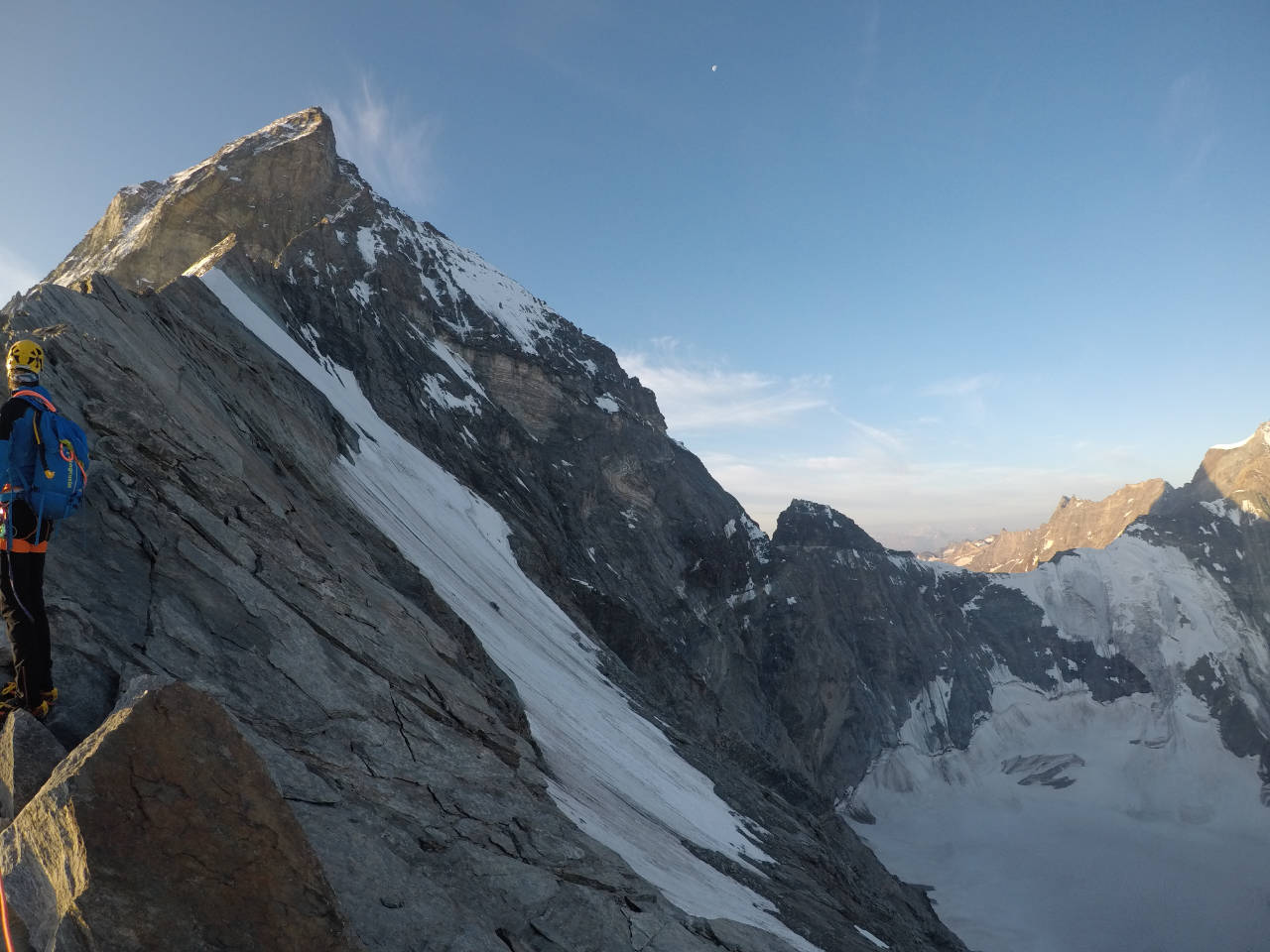Una linea elegante e logica sul versante italiano, su roccia buona e in ambiente spettacolare. Raramente ripetuta, offre una salita completa e poco frequentata.