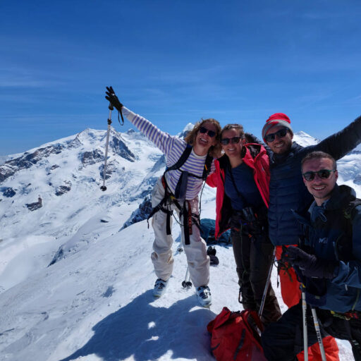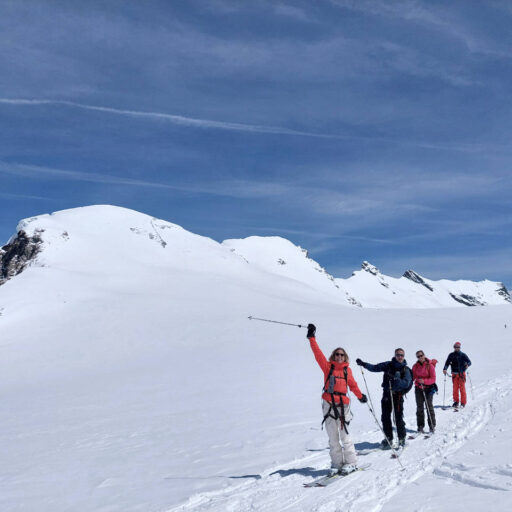 Con gli sci ai piedi si raggiunge la vetta in circa 2 ore, accompagnati in totale sicurezza dalle Guide del Cervino. Dalla cima, la discesa su ampi pendii innevati regala un’esperienza emozionante e panoramica, con rientro a Cervinia o Zermatt in base alle condizioni.