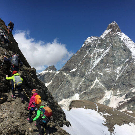 Con l'accompagnamento delle Guide del Cervino, questa esperienza diventa accessibile anche a chi ha una buona preparazione escursionistica e vuole cimentarsi in una vera avventura alpina estiva, sempre in sicurezza.
